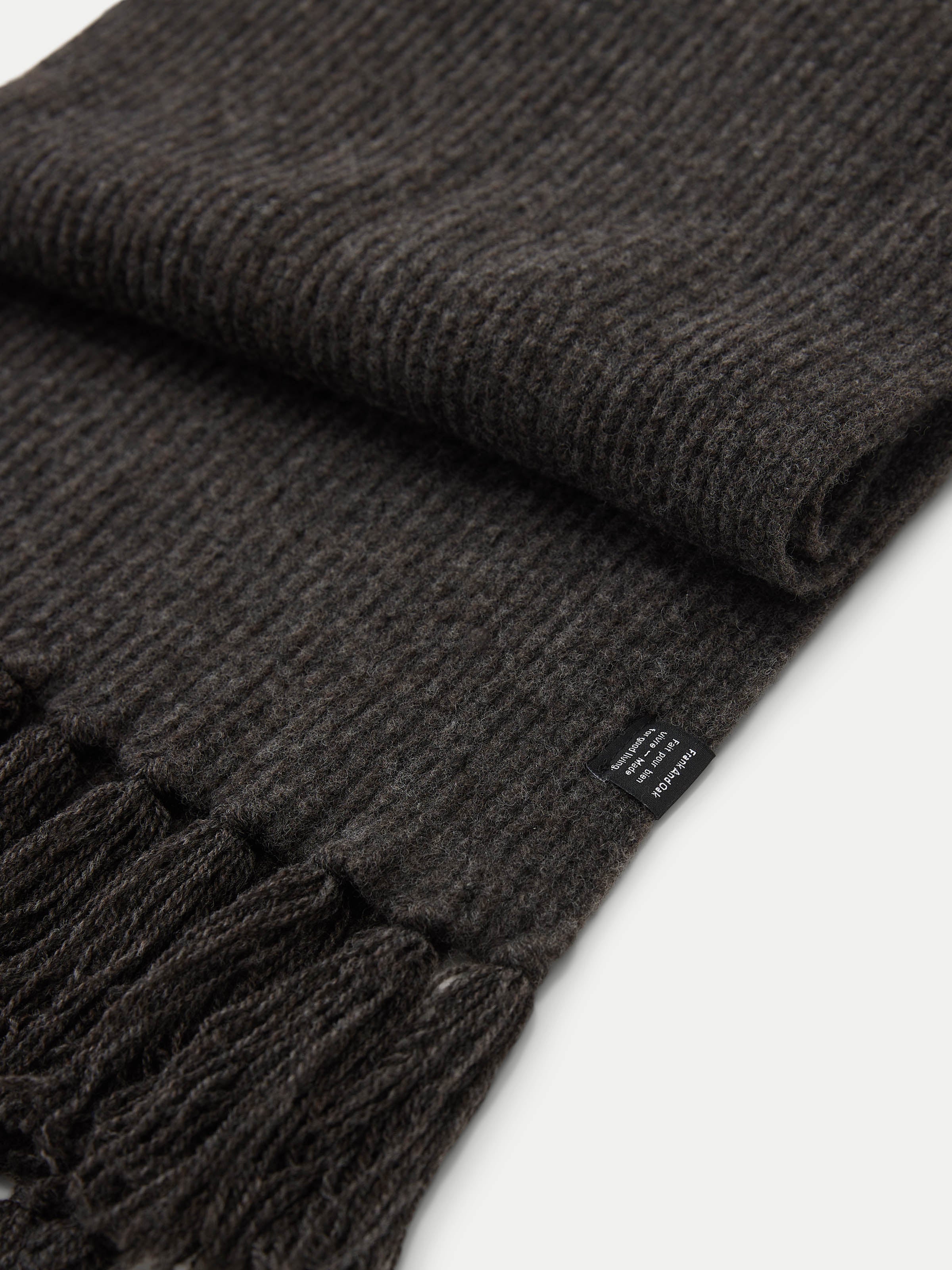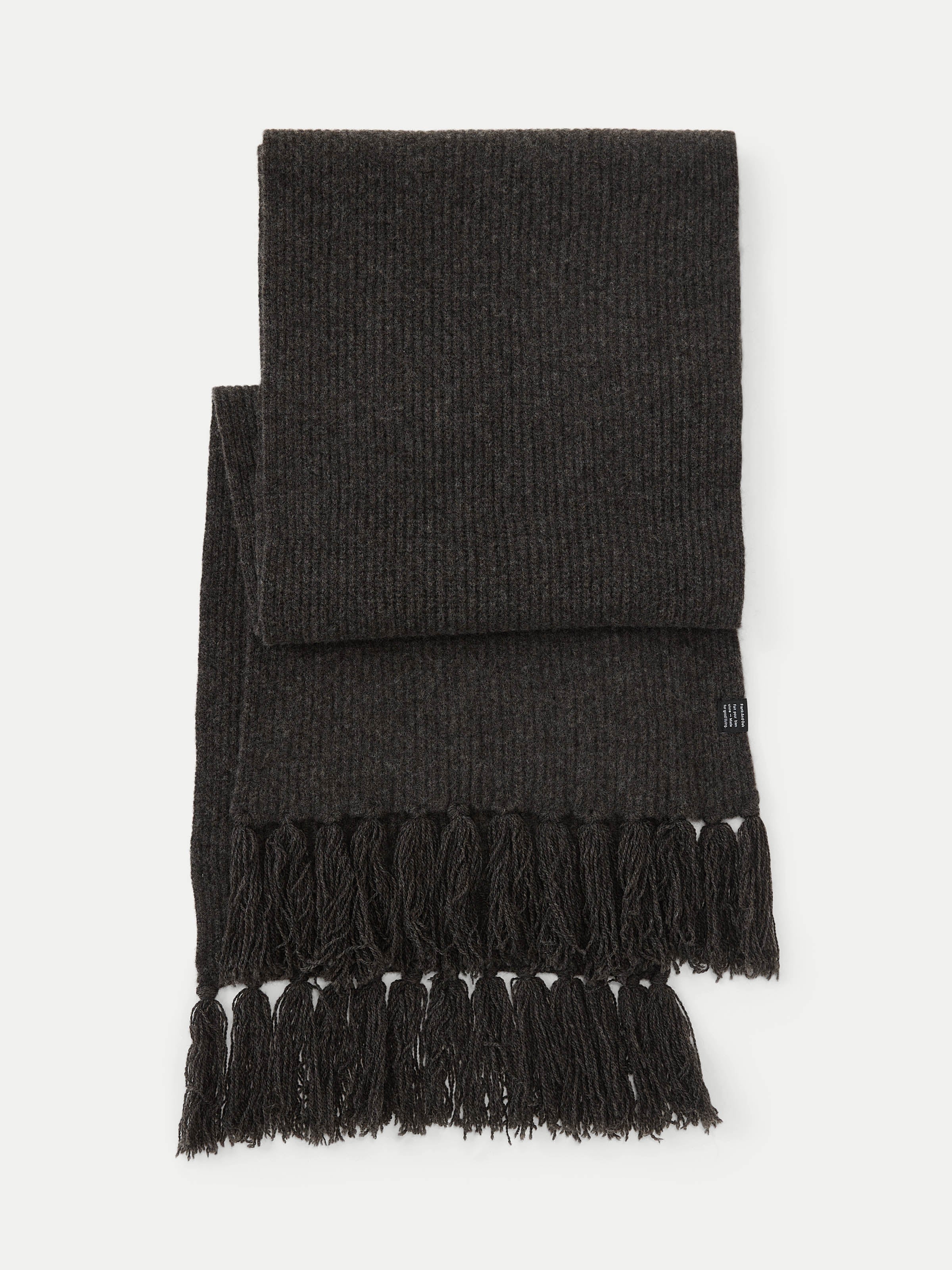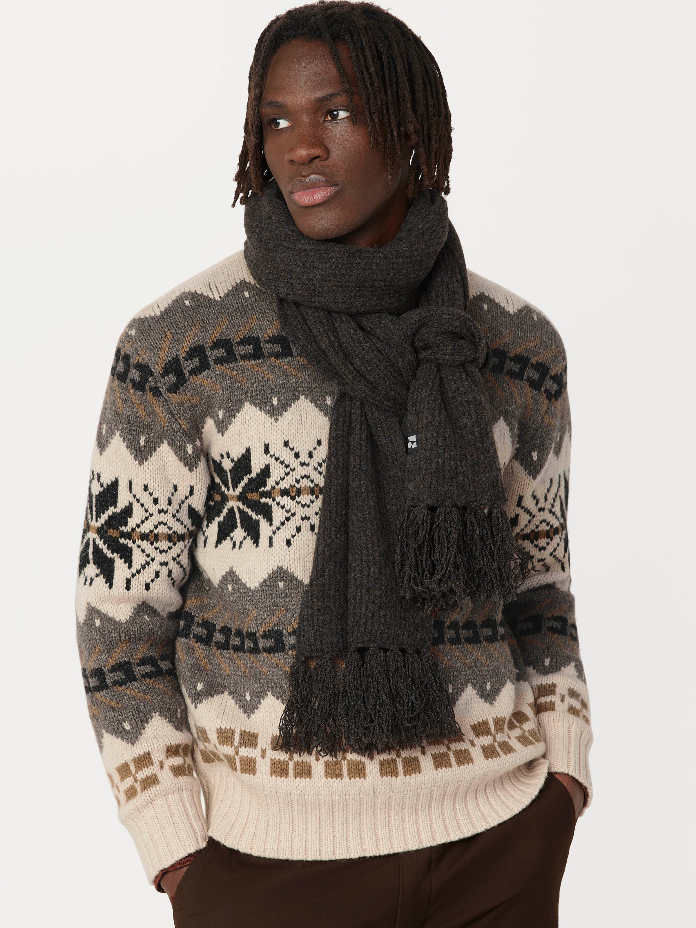Oh, the coziness! This premium scarf is crafted from a premium blend of cruelty-free merino wool and traceable yak wool. Tassels at the ends. 83 x 12 in.