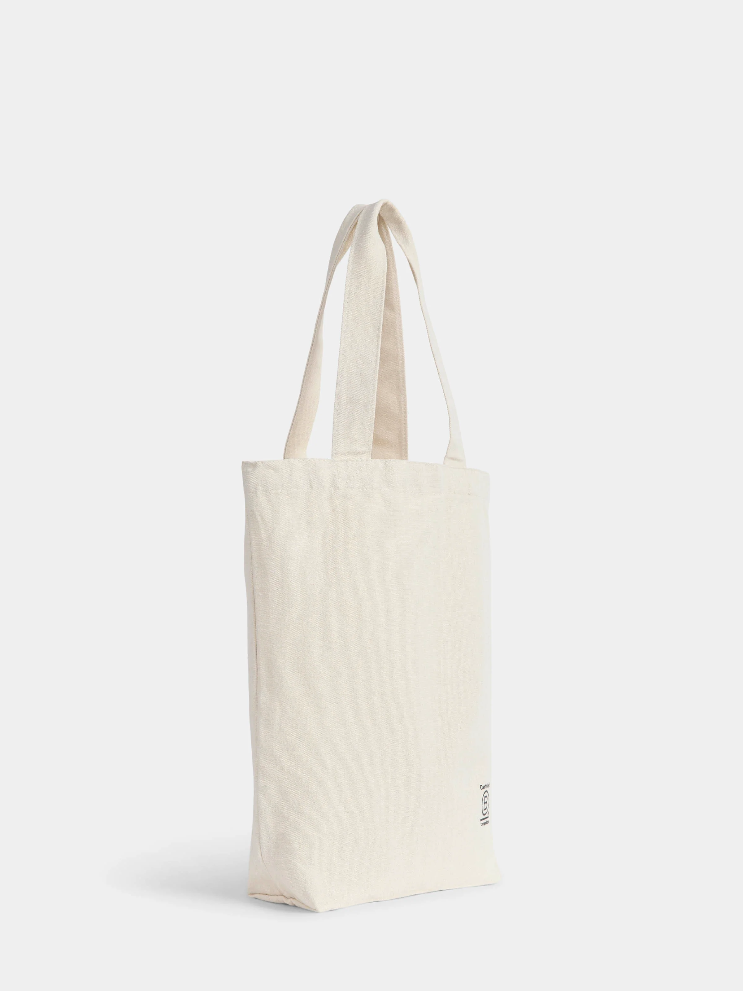 A do-it-all tote bag that will always tag along on your daily walks or your trips to the market. Sturdy canvas made from a blend of cotton and recycled polyester. 13.7" x 16.5".